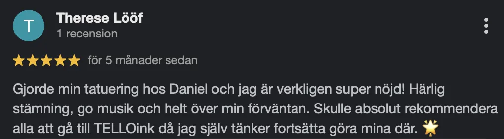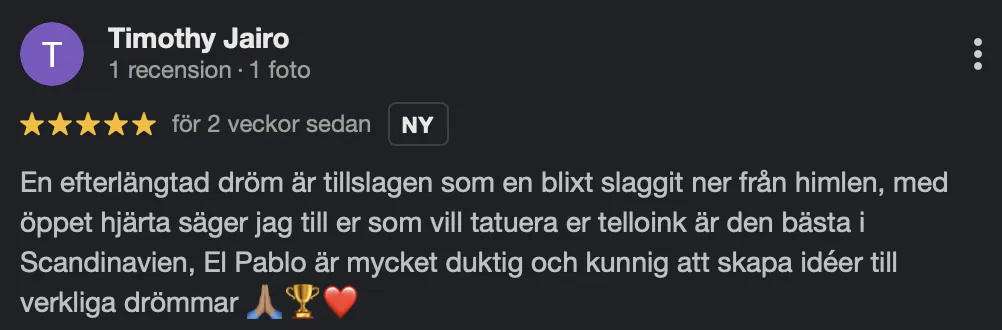 Vi på Tello Ink har en välkänd studio i Göteborg och erbjuder hög kvalité och service. Vi erbjuder dig de bästa upplevelserna för att hjälpa dig att förverkliga din idealiska tatuerings design.
